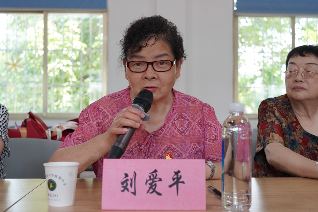 一日在党,终身奋斗。老党员同志、新党员及全体党员齐聚一堂进行了“坚守育人初心 勇担时代使命”主题座谈交流。“光荣在党50年”纪念章获得者方群先老师发表感言,退休党员代表周之苏、刘爱平、黄沛兰进行分享交流。她们动情地回顾了自身与附小共成长,几十年如一日躬耕课堂、作育桃李的故事,坚定地表达了“听党话、颂党恩、跟党走”的决心。
