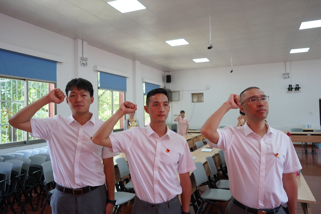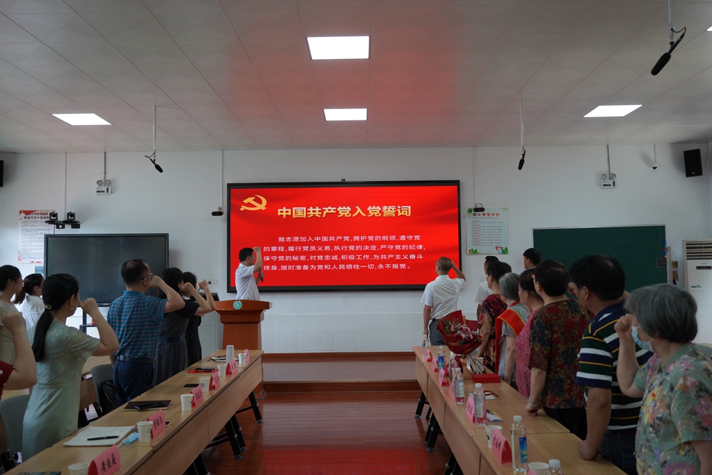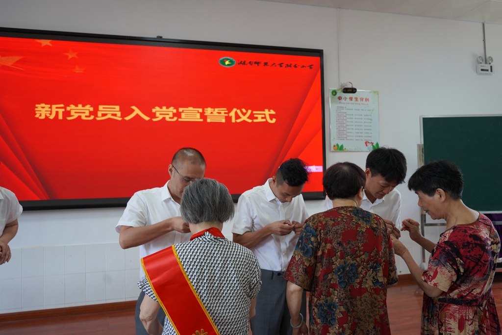 薪火相传,使命在肩。退休支部周之苏、方群先、黄沛兰三位老党员为黄灿、张勇、周帆三名新党员佩戴党员徽章,“老带新、传帮带”,一枚枚党徽传递着信仰的力量。在周凯兴书记的领誓下,大家面对党旗共同举起右手,庄严宣誓,句句铿锵。
