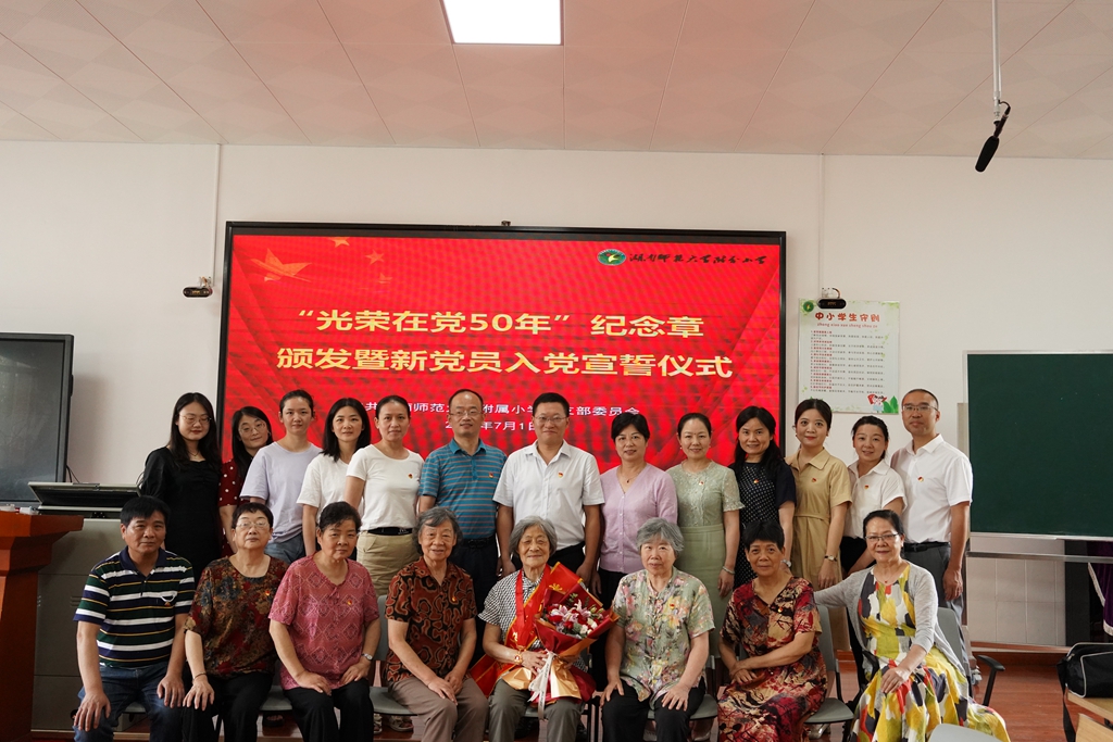 薪火相传守初心,凝心聚力担使命。7月1日上午,附属小学党总支举行“光荣在党50年”纪念章颁发暨新党员入党宣誓仪式并座谈交流。附小党政班子成员和党员教师参加仪式。