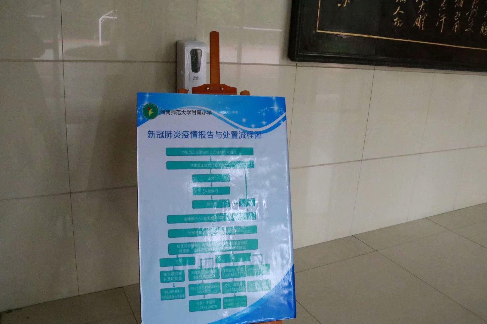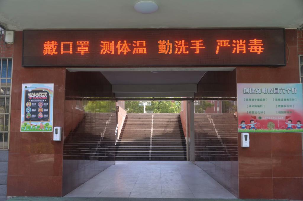 进入教室前,班主任将会在教室外对孩子们进行第二次体温测量并登记,随后单人单行入座。“开学第一课”通过校园广播传递给每个学生,德育主任龙丽老师向学生讲解防疫小贴士。各班主任老师给同学们进行疫情防控期间校园学习生活注意事项的强调,开启新征程的学习。校长李晓玲、党总支书记周凯兴等校领导到各班巡视、指导师生防疫工作。